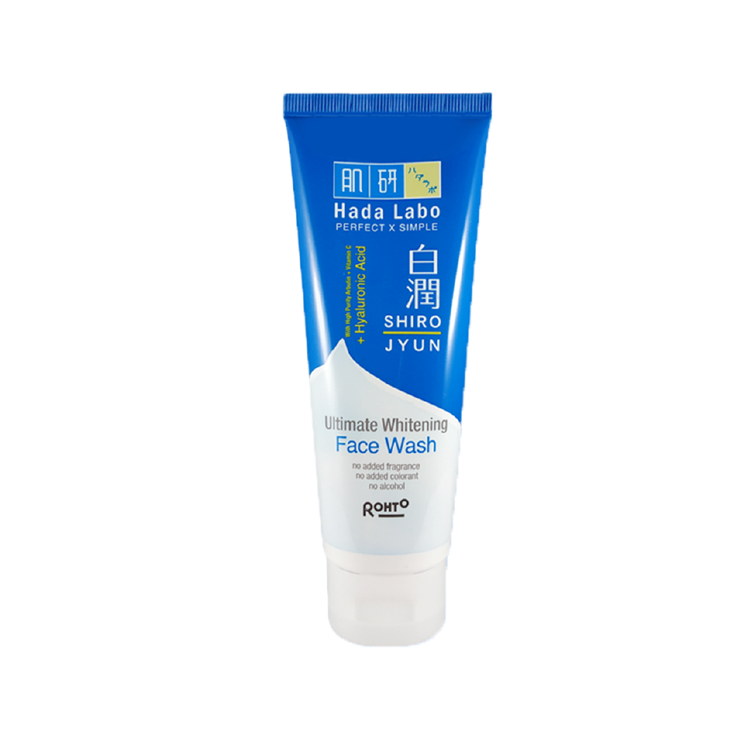 Hada Labo Shirojyun Ultimate Whitening Face Wash adalah pembersih wajah dari Rohto Pharmaceutical Japan yang dirancang untuk membersihkan kulit sekaligus memberikan efek pencerah. Produk ini hadir dalam dua ukuran, 50 gram dan 100 gram, dengan kemasan tube berwarna biru-putih yang praktis. Formulanya bebas dari pewangi, pewarna, alkohol, dan mineral oil, sehingga cenderung aman untuk berbagai jenis kulit, termasuk kulit sensitif. pH produk ini juga disesuaikan dengan pH alami kulit (sekitar 5.0–6.0), meminimalkan risiko iritasi.