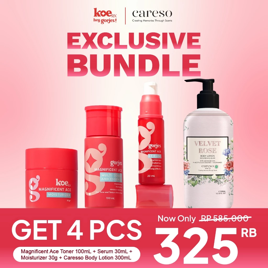 Berdasarkan informasi yang tersedia, “KOErx | Gorjes Ultimate Brightening & Hydrating Package” adalah paket perawatan kulit dari brand lokal Indonesia, Gorjes, yang mengusung konsep skin minimalism. Paket ini dirancang untuk memberikan solusi lengkap dalam satu rangkaian produk, fokus pada mencerahkan kulit, menghidrasi secara maksimal, dan memperbaiki tekstur serta kesehatan kulit. Produk-produk dalam paket ini biasanya mencakup beberapa item andalan dari Gorjes, seperti toner, essence, serum, dan/atau moisturizer, dengan kandungan aktif yang mendukung hidrasi, pencerahan, dan perlindungan skin barrier.